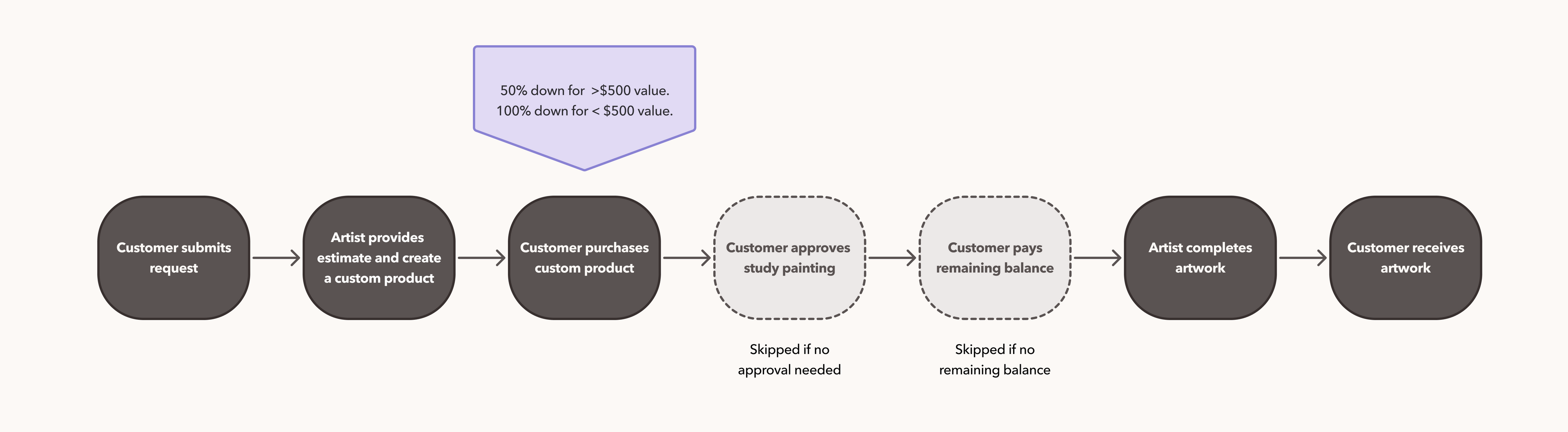 The prices shown include a free study painting to be approved by the customer before the artist proceeds to work on the final piece. This service can be waived which will subtract $50 from the listed price.