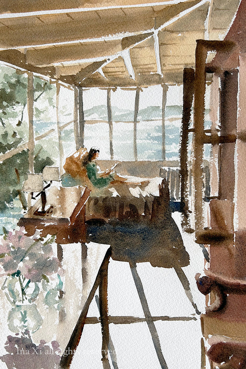 My favorite method of framing original watercolor art is using a floating picture frame. With a floating frame, the artwork is held in place between two pieces of glass, as if suspended in the air, and stands out more against its background. Plus, you will be able to see my signature sketch on the back of the painting more easily (not that you will do this often).