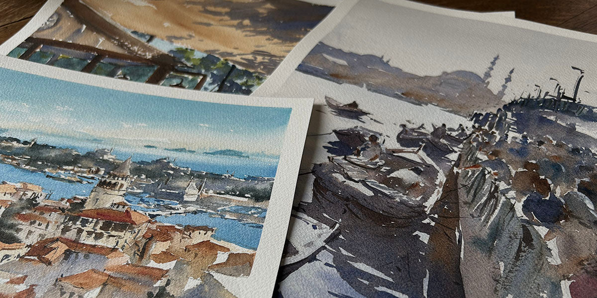 Each print comes with a mat and a backing board and is ready to frame. For protection during transportation, the matted prints are wrapped in a clear plastic sleeve and then put into a rigid, protective envelope.